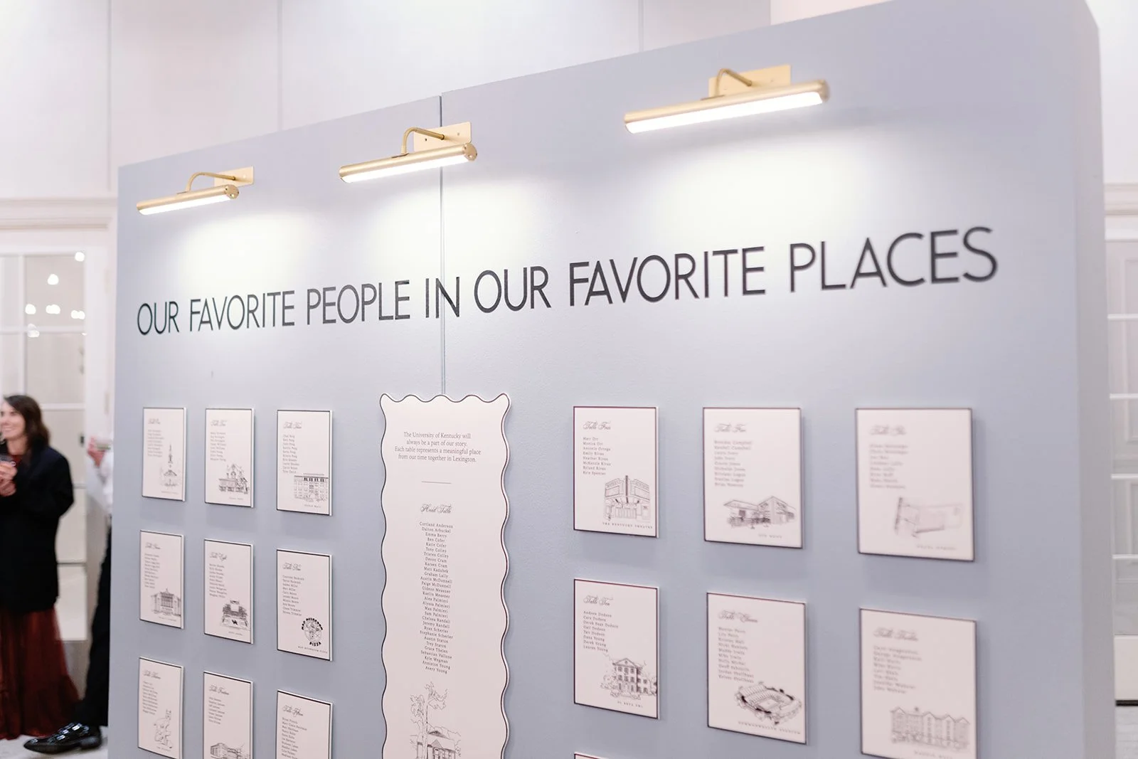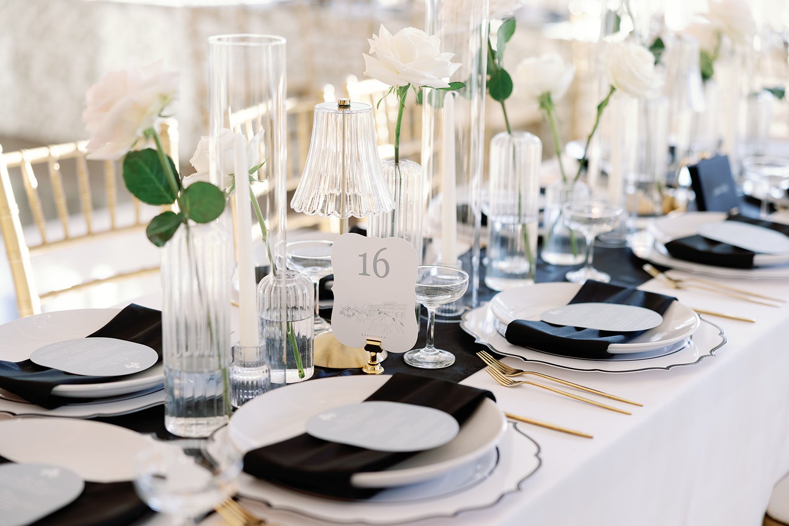 The seating chart featured custom illustrations inspired by Lexington and the University of Kentucky, a meaningful nod to where their relationship began, while handwritten thank you notes were placed at every table for guests. Another nod to Kentucky, we also included betting slips in every program!