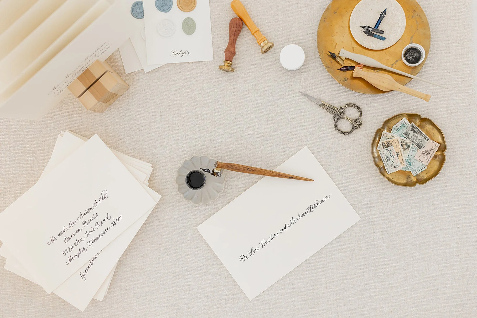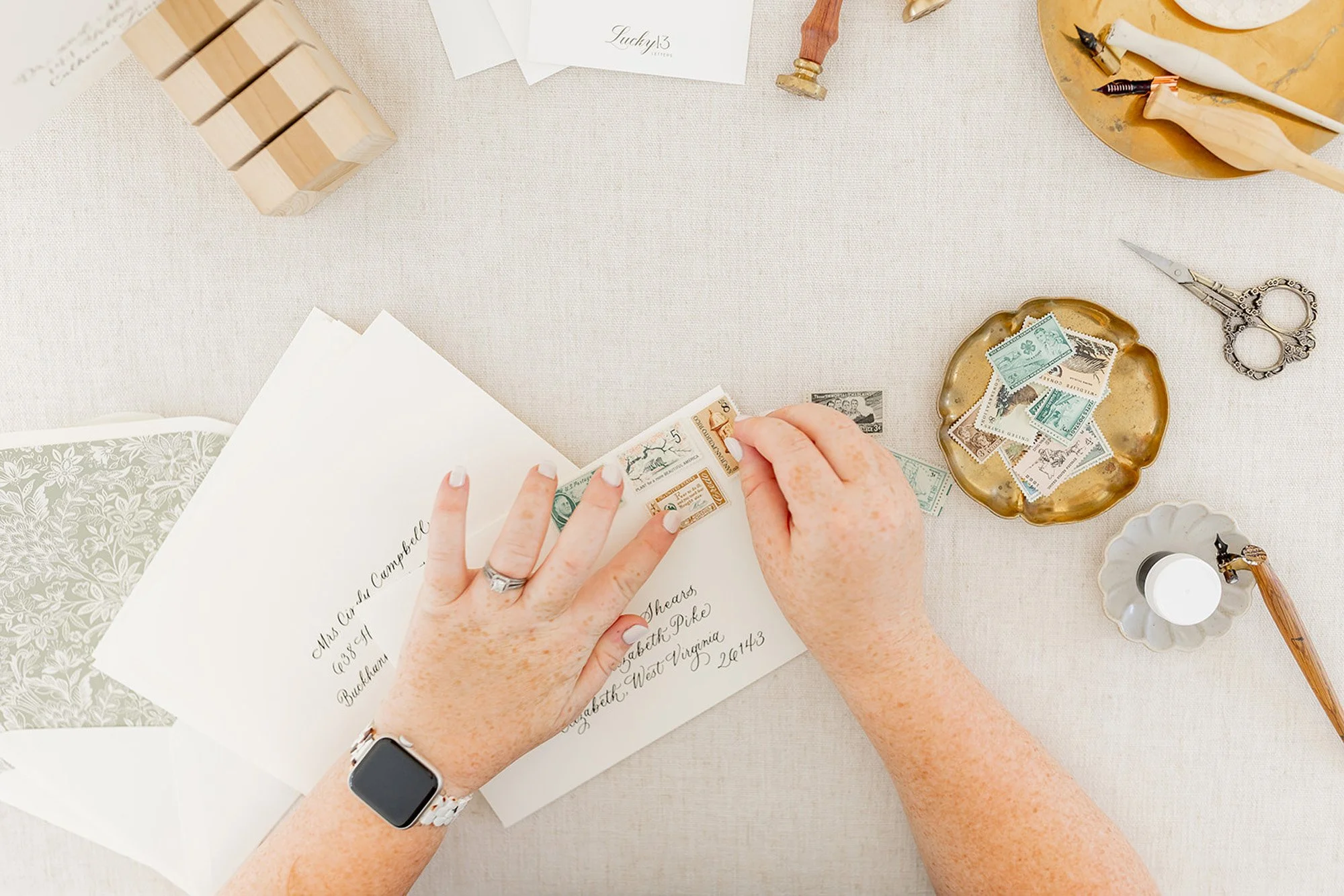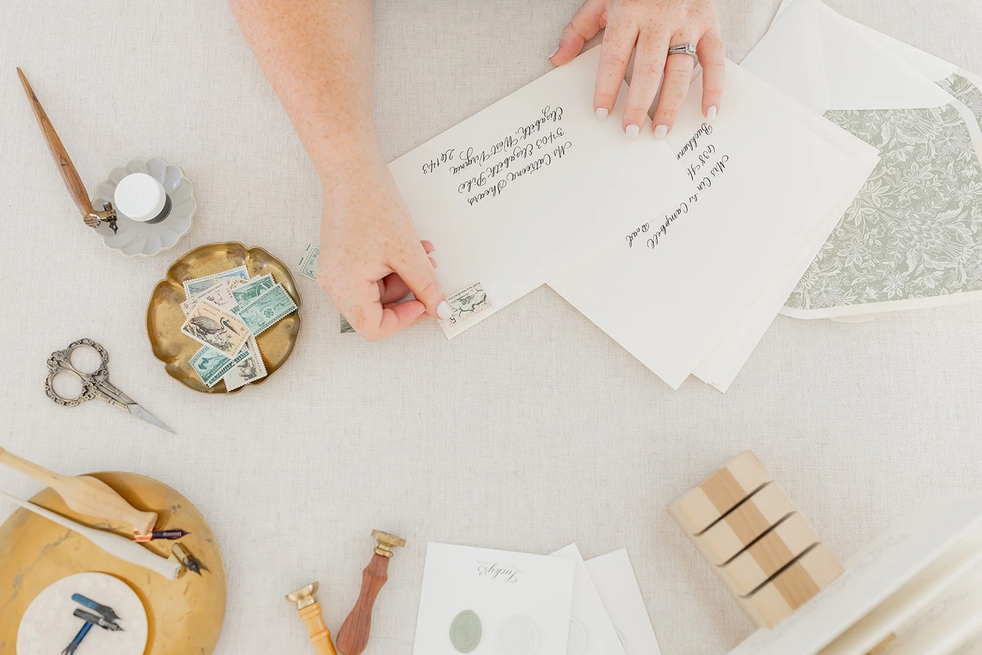 Our invitation process does not stop when the addressing is complete. We take the stress away and handle all assembly, stamp curation, and mailing for our clients.